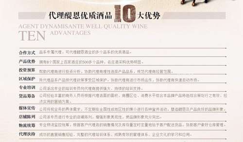 方案、功能分区,帮助经销商节省大量开支;立体化的整体培训,短期内便可使加盟商转变为葡萄酒