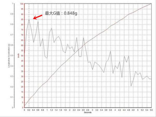 之间。最大减速G值达到了三车最高的-1.271g。