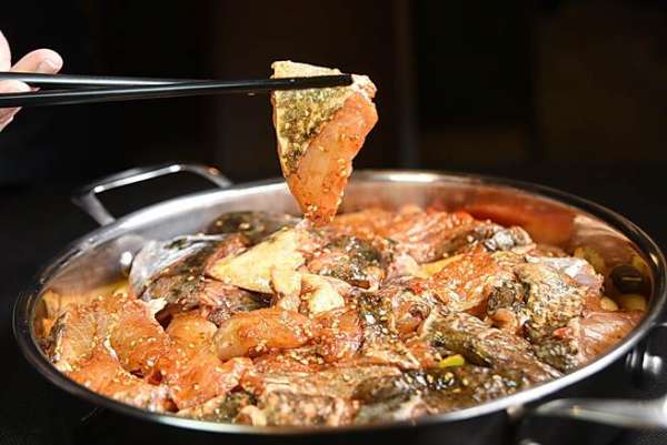 〈石斑鱼〉焖锅是将一整尾石斑鱼,连鱼头带鱼肉放入锅内焖制。(图/姚舜摄)