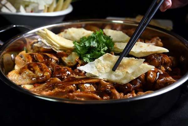 吃焖锅除了可以配白饭,也可以点一份烙饼沾着锅内酱汁吃食。(图/姚舜摄)