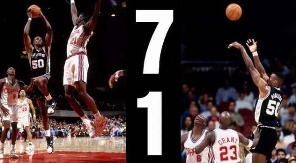 1994年的常规赛的最后一场比赛,马刺112-97战胜快船,“海军上将”大卫·罗宾逊创造了另外一项纪录,他41投26中,罚球25罚18中攻下了71分,并借此罗宾逊以29.8分成功反超奥尼尔的29.3分,拿到了得分王的头衔。