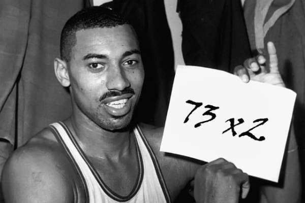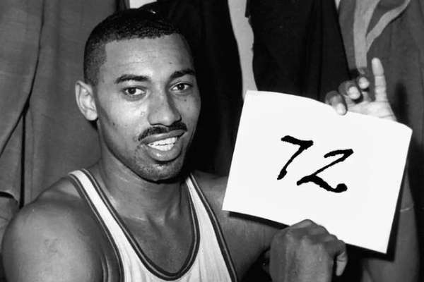 1962年张伯伦共有4场至少得到72分,1962年11月3日,旧金山勇士127-115战胜洛杉矶湖人,张伯伦投中29球、罚中14球得到72分,整个赛季数据场均:44.8分+24.3板。
