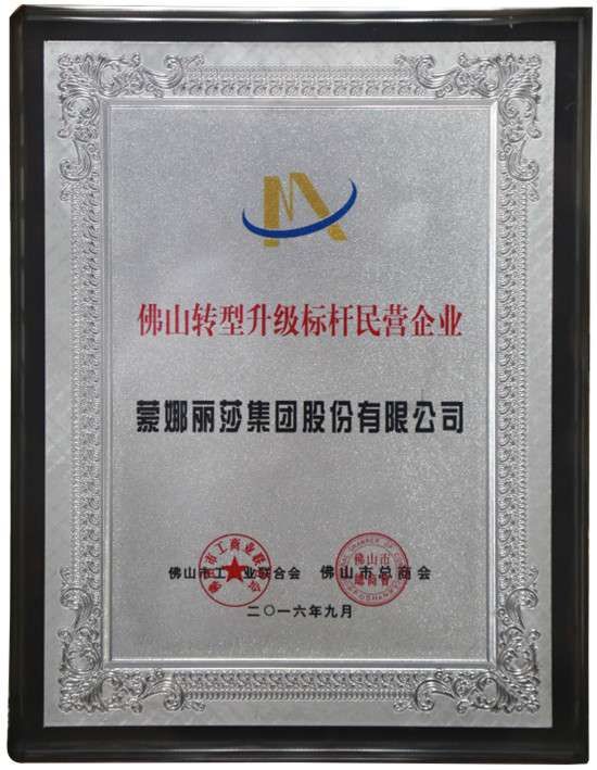 2016年11月7日,佛山市工商业联合会、佛山市总商会共同在佛山恒安瑞士大酒店举行以“扎根实业,专注创新”为主题的佛山市优秀民营企业先进事迹报告会。会上,蒙娜丽莎集团先后获得“佛山市优秀民营企业”及“佛山市转型升级标杆民营企业”荣誉称号。蒙娜丽莎集团总裁萧礼标作为标杆企业代表分享了蒙娜丽莎集团在转型升级、做优做强领域的一些做法和举措,受到与会者的一致好评。