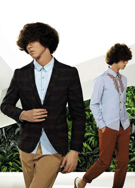 男装新品以辽阔的异域空间作为基调,加入粉绿、浅蓝、粉橙等形成国际流行色彩,为荒凉的背景增添了无限生机和活力。如今,