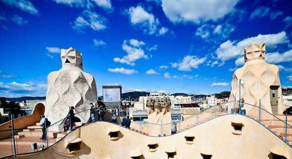 (Casa Mila o La Pedrera) 高迪所有的作品都充满了弯弯曲曲的曲线,这座大楼本身已经使两条街道的交汇处拐弯处的直角完全消失了,房屋本身所营造出的浑然一体的圆形和波浪形的表面似乎一气呵成,连成一片错落有致且极富想象力。另外还值得一说的是米拉公寓的绰号,不同于巴特奥之家等高迪的典型风格,高迪在这栋大楼外立面并没有使用过多的彩色装饰,而采用了单一的乳白色的石料,所以人们给米拉公寓起了个绰号――“采石场”。