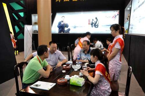会展现场,还有资深茶人们入场品茗铁观音,品茶论道,分享人生五味!他们和茶艺师们交流了茶艺和工夫茶文化内涵,悟出了品茶即是品人生的哲理,道出了将茶叶销售和茶文化传播融合一体,相互促进,共同发展的策略!