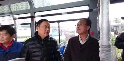 12月13日上午,武汉市交委主任余世平,武汉市公交集团董事长徐斌调研扬子江汽车集团,在乘坐体验了18米纯电动快充BRT公交车和12米纯电动观光车后,对车辆的性能及人性化设施很满意,对车辆运行中的平稳、安静状态赞不绝口!
