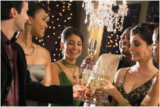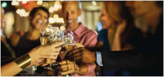充满愉悦气泡的香槟碰撞欢乐颂歌