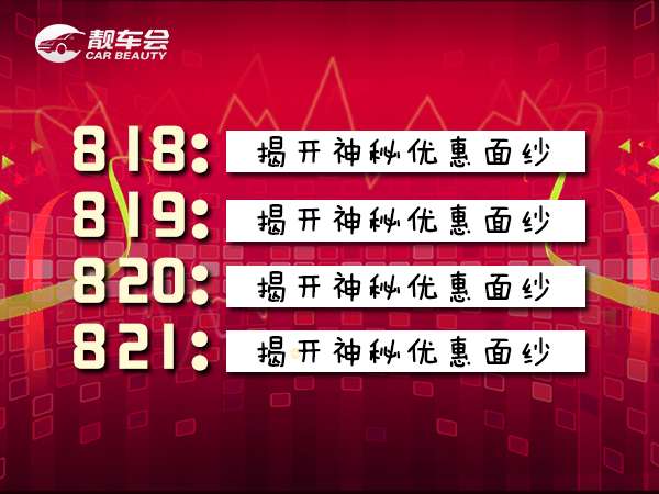 靓车会“8·18 Carnival ”连续四天都有新惊喜,不容错过,还等什么,即刻报名,一起揭开它的神秘面纱!