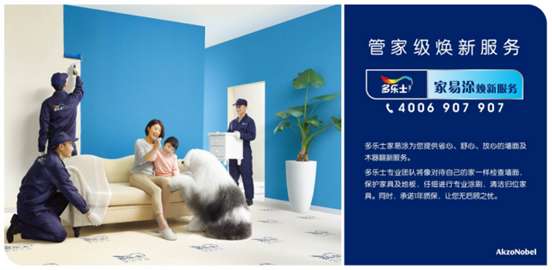 于2008年在涂料业率先推出一站式墙面焕新服务“家易涂”。家易涂服务从消费者墙面焕新的需求出发,提供包括搬移保护家具、专业涂刷、清洁归位等一站式管家级服务。目前家易涂服务覆盖中国70个城市,已为万千家庭实现了焕新家的愿望。优质的服务团队让消费者省心、舒心、放心地享受家的焕新。