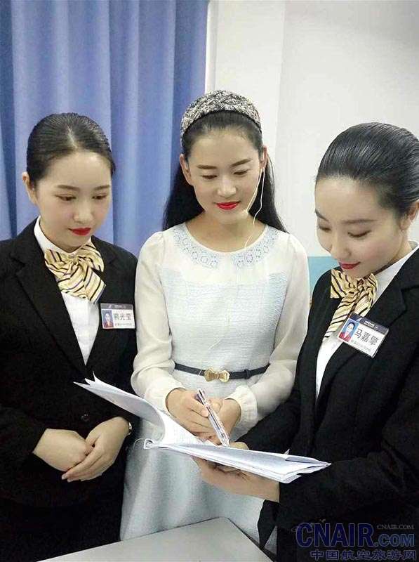 “你的碎发太多”、“你的衣服要熨烫一下”、“你的头发盘的不错”。漂亮的付饶老师用检查仪容仪表的方式完成了与我们,南航2016 新乘班的初次见面。