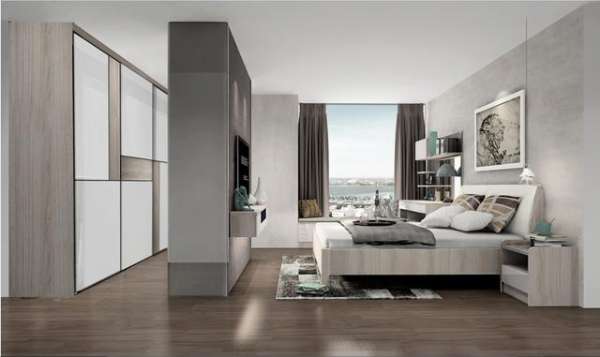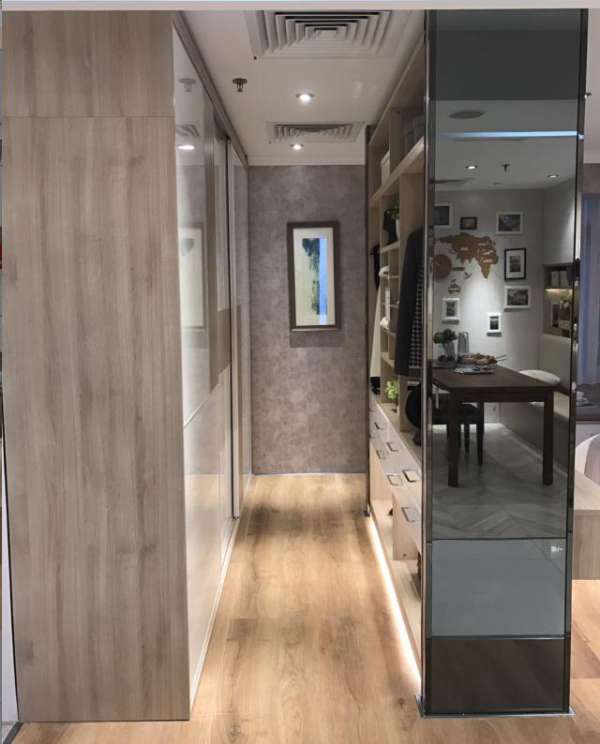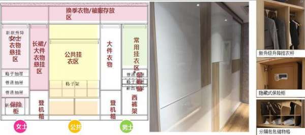 与封闭式衣柜相结合,大物件收纳区,男女睡衣外套更换区,当季衣服使用区,包包、帽子存放区,简简单单分区摆放,告别杂乱无章。生活更有品位――