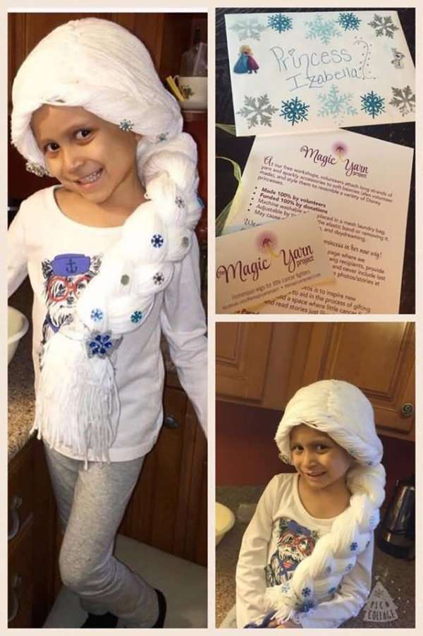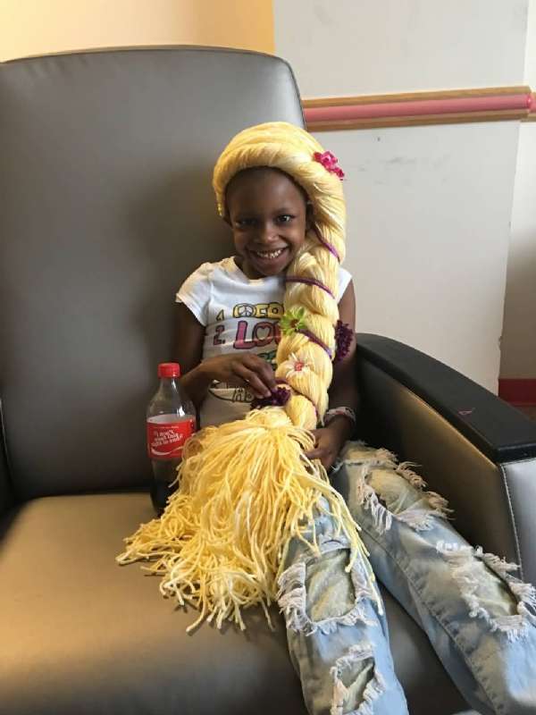 Holly本身就是护理癌症儿童的护士,自然知道朋友和她的女儿会有多难熬。看到小姑娘因为化疗失去头发的苍白小脸,她想到了该为朋友做点什么:她又做了一顶假发,一顶专门为朋友的女儿制作的迪士尼公主——长发公主Rapunzel的假发。