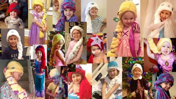 美国姑娘Holly Christensen来自阿拉斯加,她曾经是护理癌症病儿的护士。为了让与癌症抗争的孩子们开心一点,她开始用纱线为孩子们编制迪士尼公主的假发。