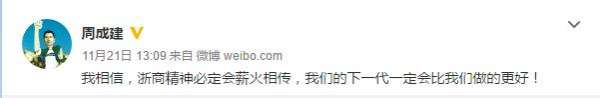 同一天,美特斯邦威董事长周成建在微博上发出了一条这样的状态: “我相信,浙商精神必定会薪火相传,我们的下一代一定会比我们做得更好!”