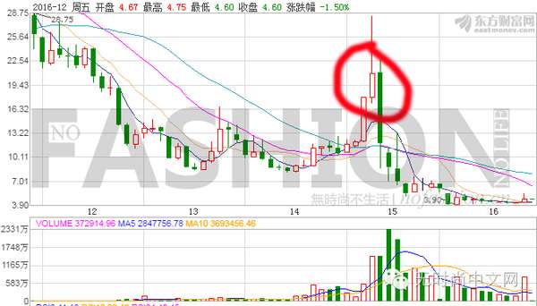 上图是美邦服饰过去几年的股价走势图,红圈的位置就是周成建控制的上海华服投资和徐翔控制的基金对美邦服饰进行高位减持的时间点。