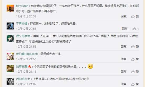 不少网友在相关微博下评论称,近期佛山环保检查较严,包装生产企业产品供不应求,原纸价格大幅上涨,不少企业在减产尽量。一位小家电品牌创始人也向亿邦动力网证实了这一消息,表示近