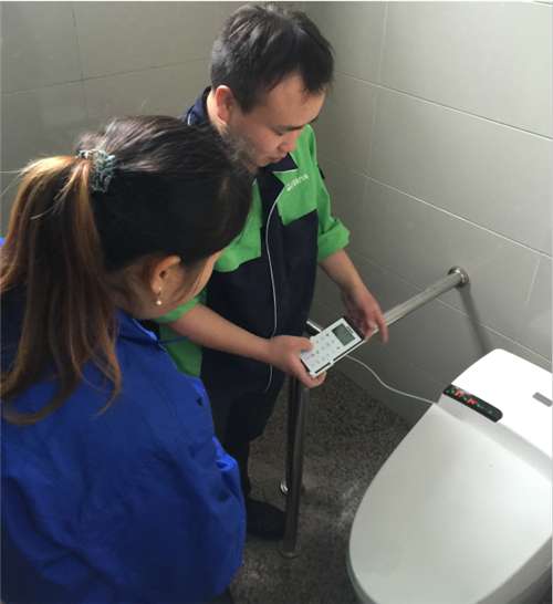 专业安装人员调试智能马桶性能