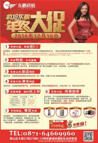 活动地点:昆明市西山区大商汇B区25栋6-10号东鹏瓷砖店
