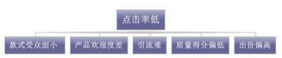 在直通车推广中,车能不能顺利开起来,点击率是最核心问题,,不仅是影响质量得分的核心因素,也是打爆引流的先决条件,凡是爆款宝贝,点击率一般都不会低。凡是点击率很低的宝贝,注定很难成为爆款,就算勉强推起来,但是付出的代价和成本绝对很高。所以点击率决定直通车的成败,决定爆款的未来,相反,点击率低是什么原因,有什么后果呢?大家可以看一下两张思维导图。