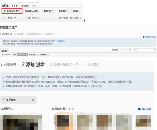 这里的推广创意有普通创意和精品创意,普通创意之前可以只可以设置2个。从2015年6月份开始,淘宝/天猫直通车开通了最多可以上传4个创意的新功能,您可以上传最多4个创意在直通车展位上进行轮播展现了,最后系统会优选您整体表现较好的创意进行主要展现,可以用不同的图片来测图和测试推广标题。