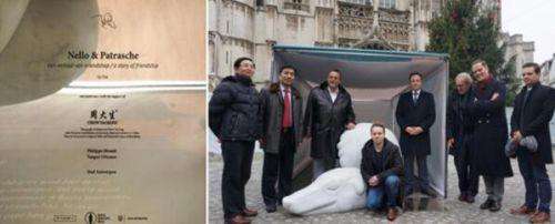 这次钻石文化之旅的另一精彩行程,莫过于城市历史象征雕塑“尼洛与小狗”的揭幕。这座坐落于安特卫普市中心核心地段的雕塑,是由周大生珠宝赞助的“尼洛与小狗”(Nello & Patrasche)雕塑大赛的获选作品,雕塑基座上的中国名字“周大生”格外引人注目。周大生公司董事副总裁向钢先生、董事副总裁卞凌先生出席了雕塑落成典礼,并与安特卫普副市长以及雕塑设计师、创意者一同为雕塑揭幕,随后安特卫普市长对周大生珠宝赞助此次雕塑大赛促进两国文化交流表示了感谢。