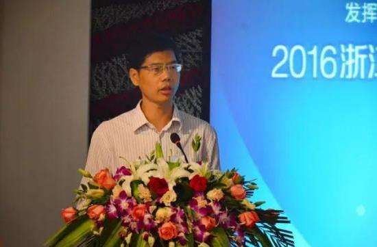 (图为浙江省经济和信息化委员会副主任陈建忠在会场发表讲话)