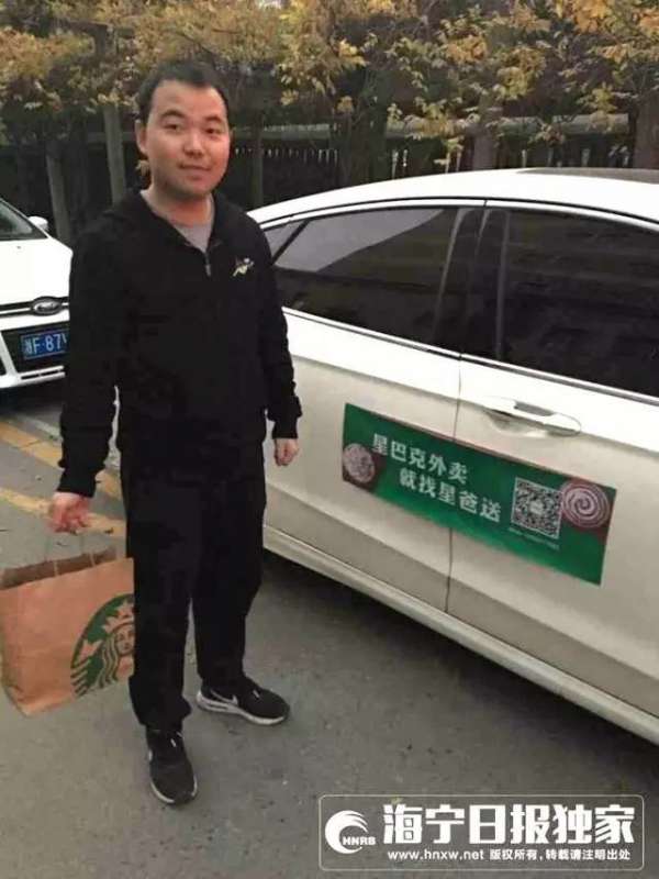 1994年出生的唐梁辉,目前没有其他工作,全职送外卖,而且只送星巴克咖啡及其附属产品。