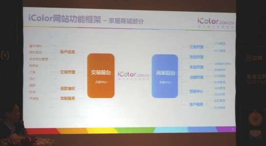 转型后的全新的iColor网站通过定制服务和创新的场景式购买,为消费者提供一站式的家装解决方案,获得了消费者和商家的广泛青睐。截至目前,网站已入驻家装公司超过130家,设计师近40000人,管理库存SKU超过16000种,日均成交订单超过3000笔。