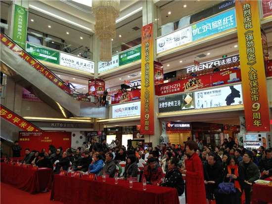 10月20日,保定法恩莎瓷砖“开仓抢大牌”在复兴路鑫丰市场盛大开抢!法恩莎瓷砖事业部总经理邓平峰先生亲临现场并作出郑重承诺:“本次开仓抢大牌活动由厂家全程监督,总部直接定价,请大家放心购买”!