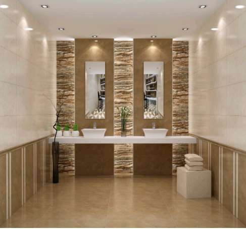 卫浴间在五行风水中隶属水性,水波纹理正好贴合卫浴空间水的属性,让瓷砖纹理与空间属性遥相呼应。走进卫浴间,有一种碧波荡漾的视觉感受,在视觉上充分调动空间层次感。