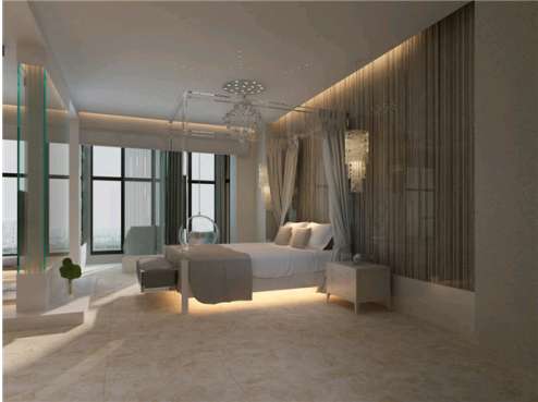 空间布置上可选择玻璃花瓶、玻璃水晶吊灯、玻璃茶几等家具饰品,透明的水晶玻璃材质让光线自由穿梭,灵动浪漫。