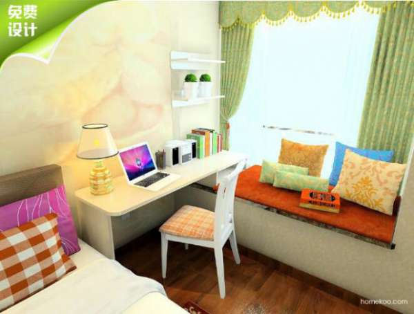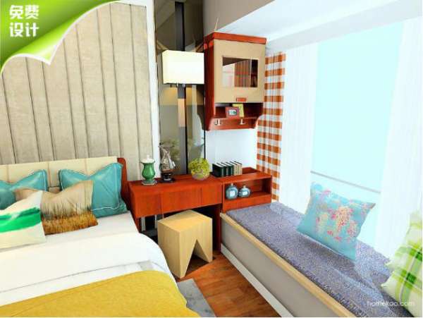 房间太小,又要容纳床、衣柜和梳妆台?别担心,把梳妆台挪到飘窗边,房间瞬间宽敞了!