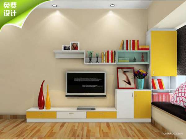 从电视柜开始,给房间多一些创意,多一些色彩。将搁板、玻璃柜和不规则底柜组合,既能装饰又能收纳,满足多样化的收纳需求。