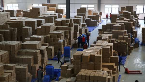 (欧普仓储人员辛勤工作保证备货充足和物流及时)