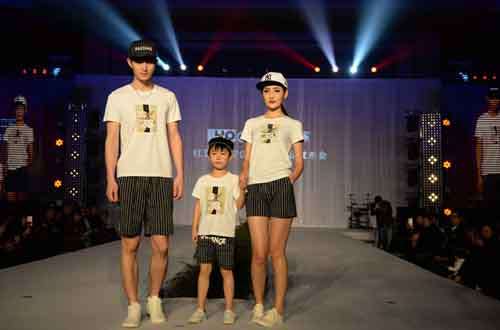 也搭配亮相,清新自然;家居服则以一家三口大小模特走秀的方式呈现,凸显“家文化”的情暖温馨。