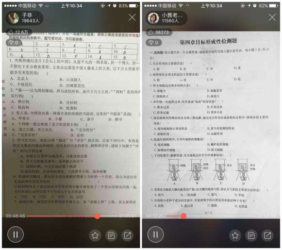老师们通过红豆Live给学生直播教学,充分利用了“红豆Live”的多图直播功能,在直播中可以上传考卷、课本的拍照图片,让学生更容易明白所讲的内容。例如,红豆Live用户名为“子非”的历史老师给学生的教学内容是“七年级历史第一单元复习+月考试卷讲解”,直播一开始“子非”老师就上传了历史复习提纲的前八道题,并进行了一一讲解。