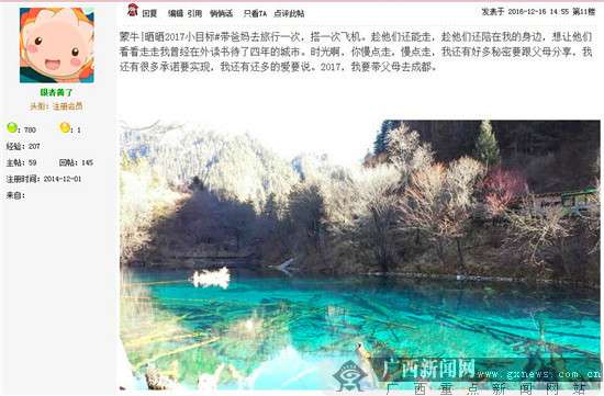 孝顺的网友希望明年可以带父母去旅游看看祖国大好河山。图片来源红豆社区