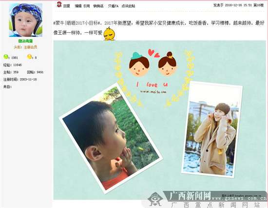 美丽的辣妈祝福孩子平安健康,孩子的快乐就是她的2017小目标。图片来源红豆社区