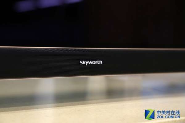 创维S9D采用了新一代OLED面板,与电视音响进行了巧妙的融合,使电视整体外观看上去简洁大气,机身结构的整机性强。正面设计十分简约,没有多余的点缀,黑色的屏体也比较深邃。创维的Logo位于底部的正中间,右下角还标有OLED与JBL标识,这也标志着这台电视使用了OLED屏幕和JBL音响。这样的标识只会出现在创维的高端机型当中。