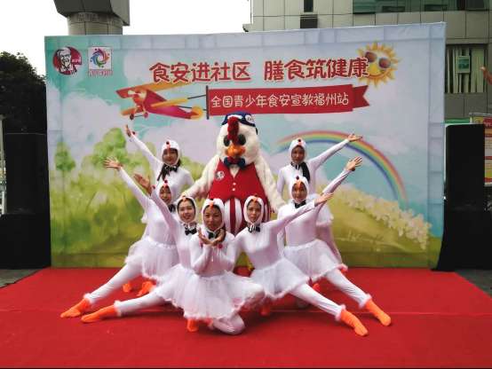 “白羽鸡”服装的大学生和肯德基奇奇一起出现在大家面前。她们用逗趣生动、激情四射的“快闪舞”将现场圣诞当天的节日气氛推向高潮。