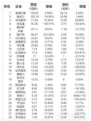 公司25强名单”中,来自中国的“海澜之家”位列第14位。据中国服装网统计,在2016年前三季度,全国服装零售业中28家上市公司实现总营收692.51亿元。其中,海澜之家为据榜首,营收120.67亿元,占比达到17.4%。