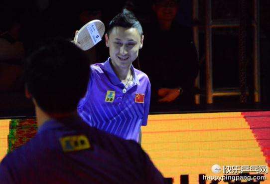 严魏豪尝试用反手发球来赢下第一轮