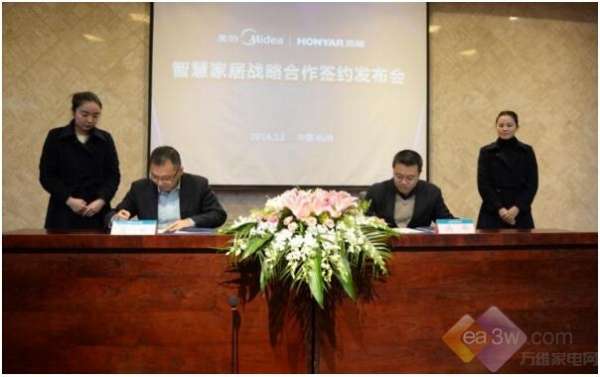 2016年12月23日,美的智慧与鸿雁电器对外宣布将在智慧家居领域开启战略性的跨界合作,双方将发挥各自技术、产品及资源优势,推动家居智能化的时代进程。