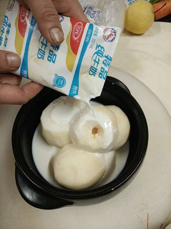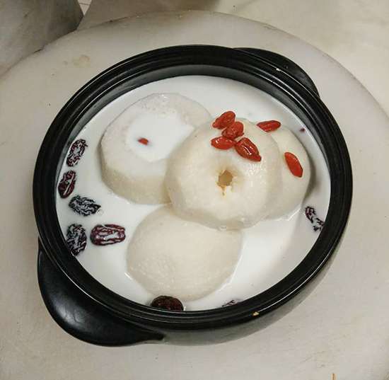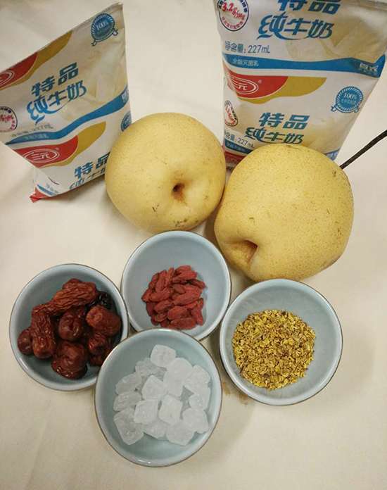 雪梨、牛奶、枸杞、红枣、冰糖、干桂花