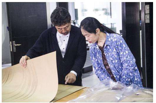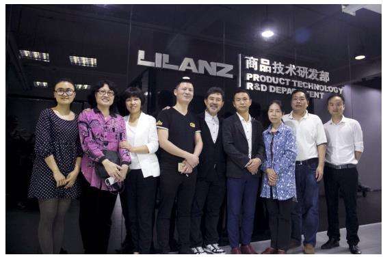 在利郎技术部人员的陪同下,井口老师走进披着“黑色酷感外衣”的时尚总部,在企业文化长廊中感受利郎的简约内涵,当走进利郎样衣室的时候,井口老师不自觉地凑向模特道具,饶有兴趣地把捏利郎2016新品西装的版型细节,并给出了适当的调整建议。