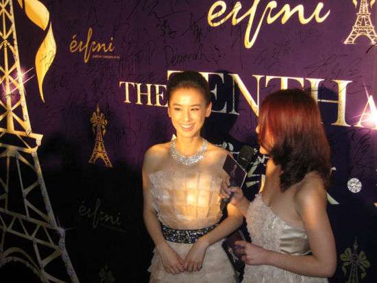 身穿伊芙丽纪念版晚装的影视明星黄圣依