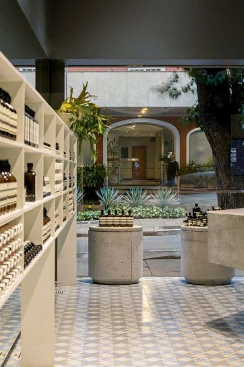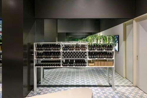 Paulo Mendes da Rocha和 METRO Arquitetos联合设计打造了Aesop位于拉丁美洲的第一家店铺,其位于高端购物街 Oscar Freire 街的街角处。暴露的混凝土搭配手工地板形成鲜明对比。地板由带图案的瓷砖铺成,它们是使用不同颜色的黏土由手工制做而成的。