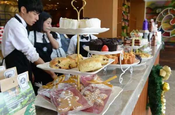 ??一进售楼处就能看到各类精美的点心,一旁的咖啡师正全神贯注地冲调着手中的咖啡,动作非常娴熟。客户们则翘首以盼,等待着热气腾腾的星巴克咖啡,整个售楼处弥漫着阵阵香气。