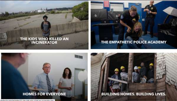,追踪多位社区工作者细微而日常的工作一点点改变居民生活的故事。星巴克对这个系列纪录片的重视从它的制作人可以窥见——由当时的星巴克 CEO 的霍华德·舒尔茨和执行制片、前《华盛顿邮报》资深编辑 Rajiv Chandrasekaran 共同创作。